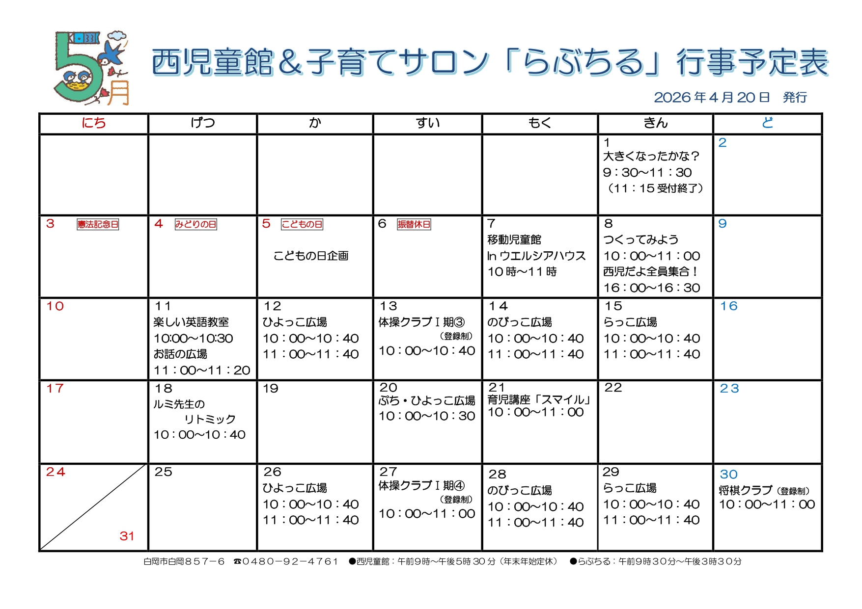 ようこそ!白岡市西児童館へ!